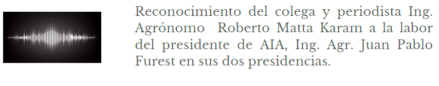 En primer lugar, tres entrevistas hechas por el periodista e Ing. Agr. Roberto Matta Karam, sobre diversos temas vinculados a la AIA.